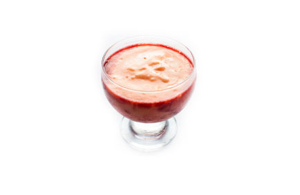 Suave creme de papaia com licor de cassis. Sobremesa leve e refrescante, ideal para quem acabou de comer uma carne.